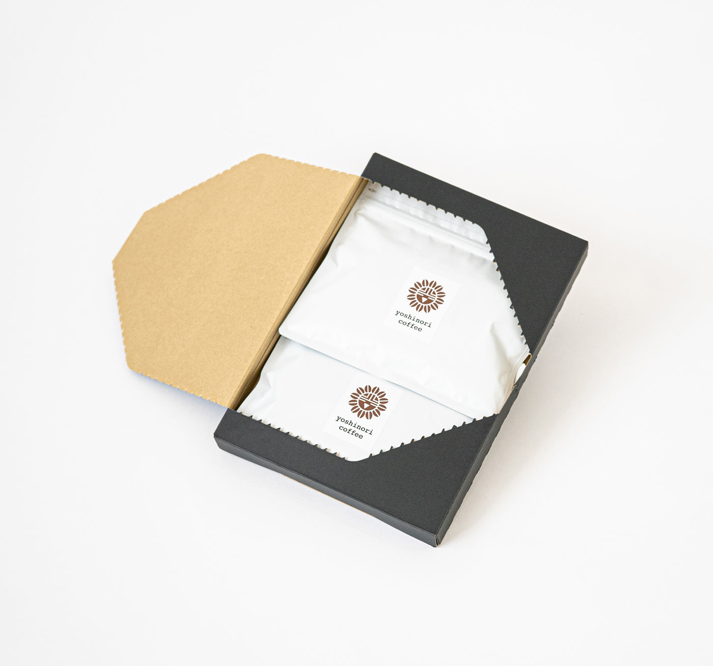 受け取り不要のポストへ直接に配送致します。厳選されたスペシャルティコーヒー(オリジナルブレンド200gとロースターチョイスによるシングルオリジン豆を200g)を2種類をお詰めしてお送りします。香り高いコーヒータイムをお楽しみ下さいませ。